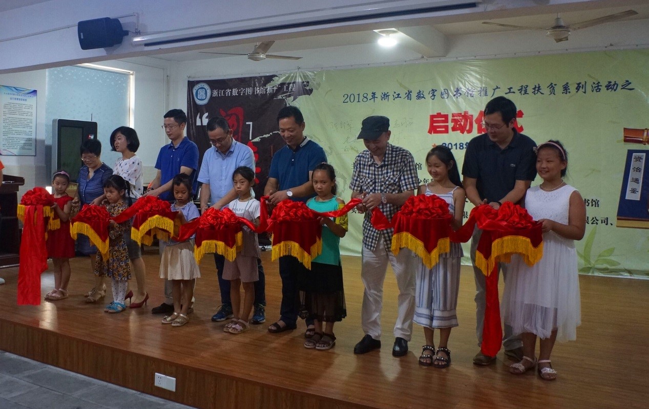 活動現(xiàn)場,天臺縣文化廣電新聞出版局副局長陳邦軍、浙江圖書館工會主席詹利華、浙江省青少年科技活動中心部長趙國治、臺州市圖書館館長毛旭、天臺縣圖書館館長王水球、北京方正阿帕比技術(shù)有限公司經(jīng)營中心副總經(jīng)理戴鵬、五洲融媒體科技股份有限公司副總經(jīng)理?xiàng)钊粸榇舜位顒訑y手剪彩。